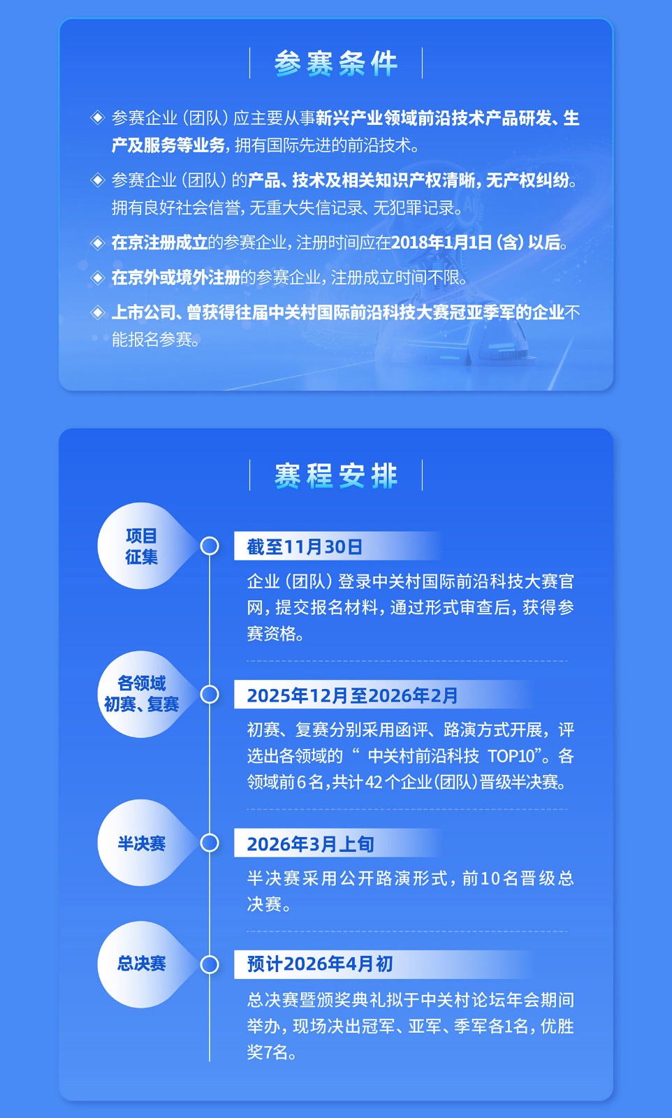 5.上市公司、曾获得往届中关村国际前沿科技大赛冠亚季军的企业不能报名参赛。